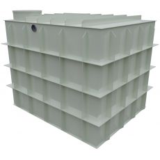 Po instalaci je samonosná plastová jímka pouze pochozí. Součástí jímky je nátok a přepad (DN 100-150 dle volby zákazníka), dále revizní komín o průměru 60cm ve standardní výšce 20cm (zdarma max.do 30cm) a plastový krycí poklop.